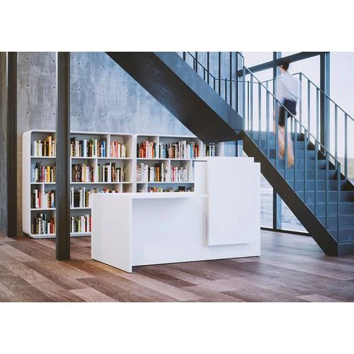 - Équipée de modules droits et gauches, cette banque d’accueil moderne et fonctionnelle est particulièrement bien adaptée pour l’accueil des personnes à mobilité réduite (PMR).