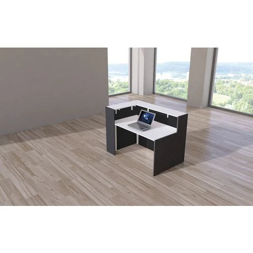 - Banque d’accueil d’angle compacte en construction bois / acier.