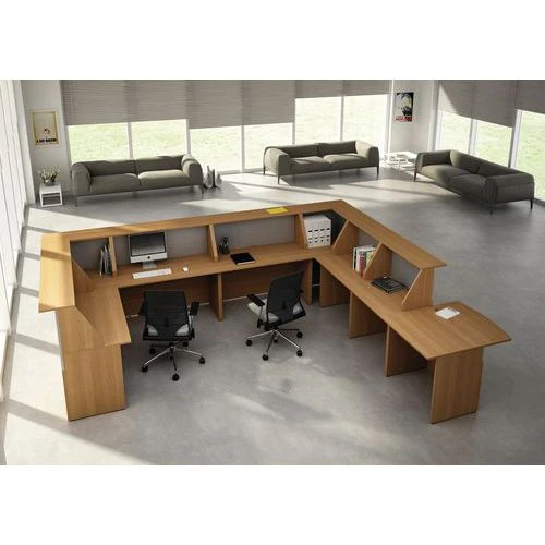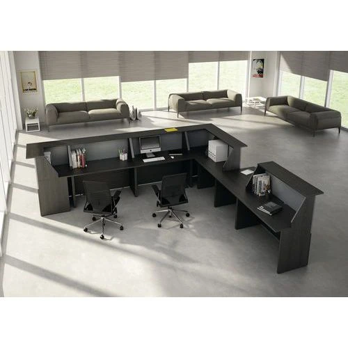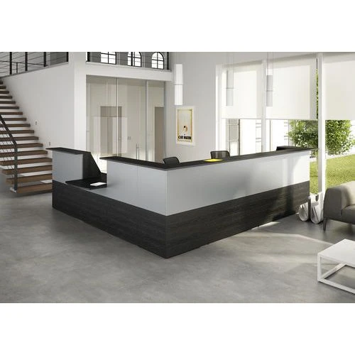 - Fabrication en panneaux de particules surfacés mélaminés E1 épaisseurs 18 et 22mm, les chants sont d’une épaisseur de 3mm. Les façades(épaisseur 22 mm) sont bicolores. Les joues latérales d’une épaisseur de 18 mm sont dans la même finition que les plateaux . Chacun des modules sont munis de vérins pour la mise à niveau de l’ensemble. Chacun des modules sont autonomes et peuvent être utilisés seuls indépendamment des autres. Hauteur totale 1170mm, profondeur tablette accueil 300mm et plan de travail 600mm. Les plans de travail disposent d’un passage de câbles intégré.