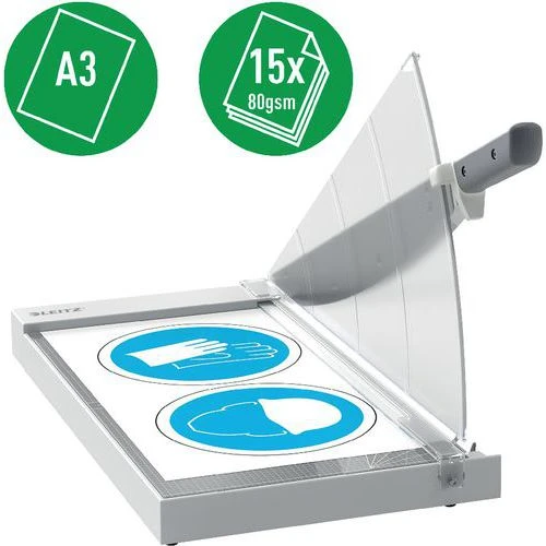 - Cisaille Leitz PrecisionOffice A3 est parfaite pour pour découper jusqu’à 15 feuilles (80 g/m²) grâce à sa lame en acier inoxydable.