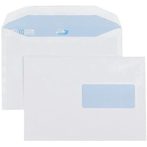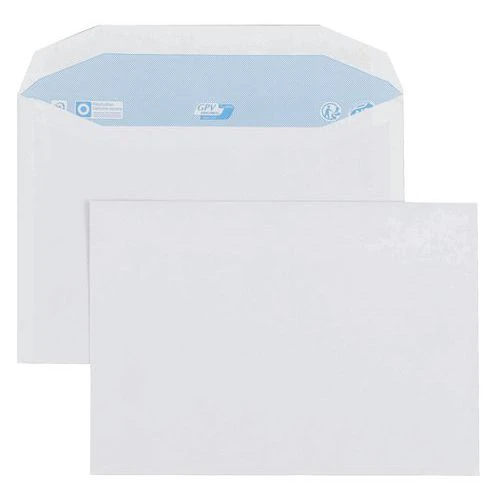 - Enveloppe blanche avec fermeture à patte gommée trapézoïdale adaptée à la mise sous pli bureautique.
