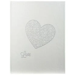 - Un livre d’or blanc à la couverture blanche légèrement pailletée, et ornée d’un marquage coeur argenté, pour conserver le souvenir des moments forts de la vie.
