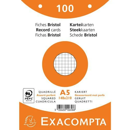- Paquet 100 fiches sous film – bristol quadrillé 5×5 perforé 148x210mm Haut standard de qualité et de régularité.