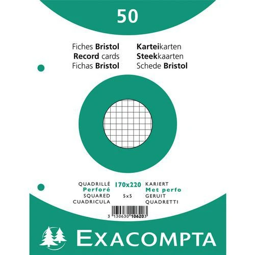 - Paquet 50 fiches sous film – bristol quadrillé 5×5 perforé 170x220mm Haut standard de qualité et de régularité.