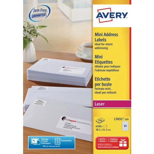 Personnalisez et imprimez vos étiquettes gratuitement sur www.avery.fr Avery® récompense vos achats: 1 cadeau offert pour tout achat d’une boîte d’étiquettes (voir conditions sur leur site).