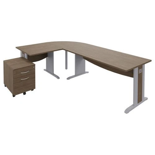 - Ce pack est composé d’un bureau droit L 160 cm avec 1 obturateur passe-cables , d’un angle à 90°, un bureau droit L 80 cm et d’un caisson mobile.