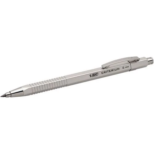 - Porte-mines au corps argenté muni d’un clip en métal.
