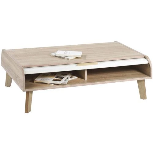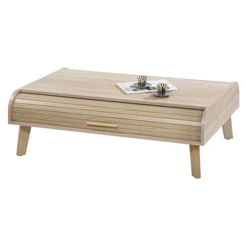 - Table basse vintage dont vous apprécierez la niche sous plateau fermée par 2 rideaux.