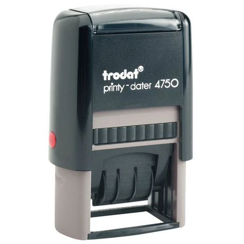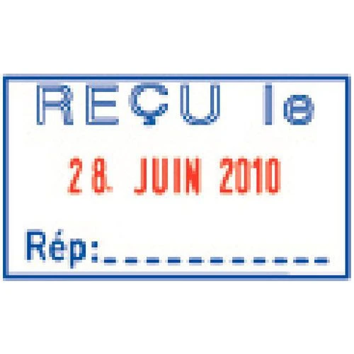 - Empreinte bicolore (texte bleu, date rouge).